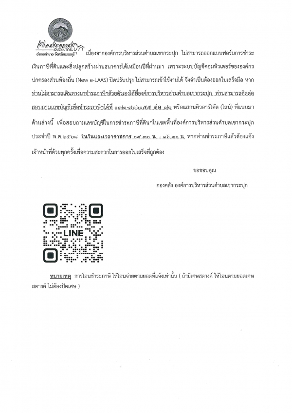 การประชาสัมพันธ์การชำระภาษีที่ดินและสิ่งปลูกสร้าง