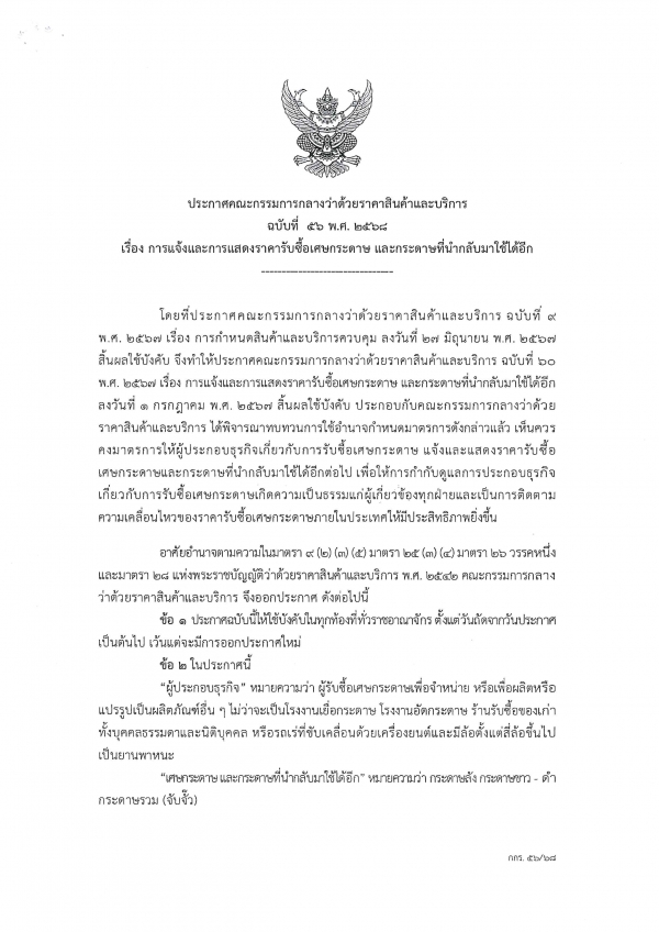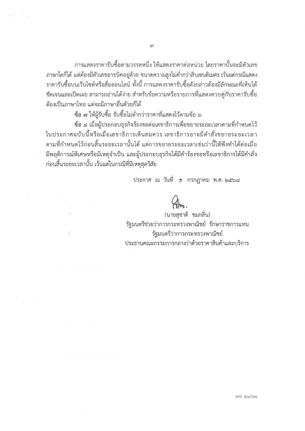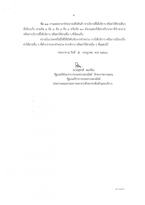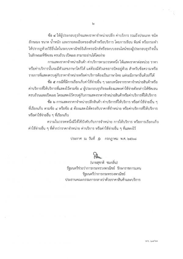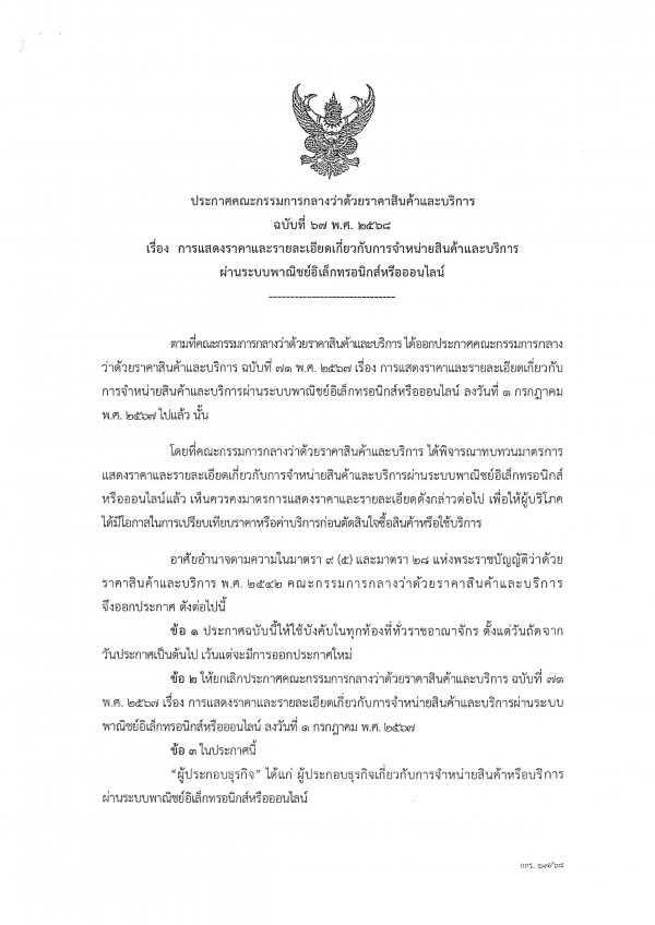 ด้วยคณะกรรมการกลางว่าด้วยราคาสินค้าและบริการ ได้ออกประกาศคณะกรรมการราคากลางว่าด้วยราคาสินค้าและบริการ เพื่อคุ้มครองให้ผู้บริโภคได้มีโอกาศเปรียบเทียบราคาหรือค่าบริการก่อนตัดสินใจซื้อสินค้าหรือใช้บริการ