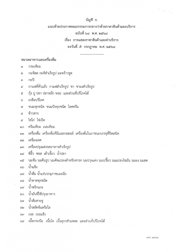 ประกาศคณะกรรมการราคากลางว่าด้วยราคาสินค้าและบริการ