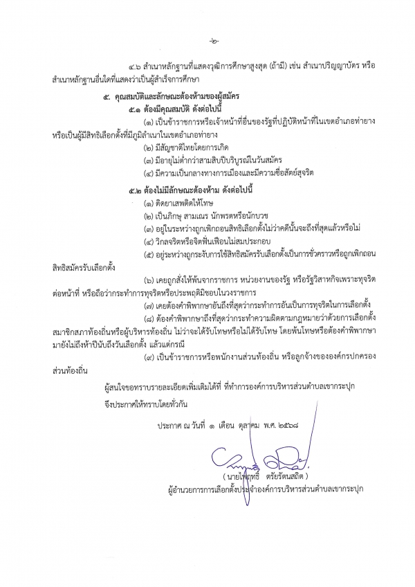 ประกาศผู้อำนวยการการเลือกตั้งประจำองค์การบริหารส่วนตำบลเขากระปุก