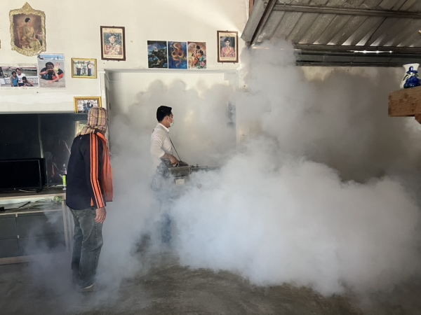 วันที่ 27 ตุลาคม 2568 เจ้าหน้าที่องค์การบริหารส่วนตำบลเขากระปุก เพื่อดำเนินการฉีดพ่นหมอกควันป้องกันยุงลาย บ้านผู้ป่วยไข้เลือดออก บริเวณหมู่ที่ 6 ตำบลเขากระปุก อำเภอท่ายาง จังหวัดเพชรบุรี
