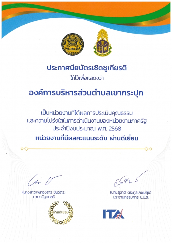 ผลการประเมินคุณธรรมและความโปร่งใสในการดำเนินงาน ของภาครัฐ ประจำปีงบประมาณ พ.ศ.2568