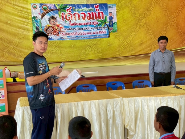 โดยวัตถุประสงค์ เพื่อให้เด็กและเยาวชนในตำบลเขากระปุก ได้มีความรู้ความเข้าใจ มีทักษะในการเอาชีวิตรอดจากการจมน้ำ เพิ่มศักยภาพความรู้ความสามารถด้านการป้องกันภัยทางน้ำและสามารถถ่ายทอดความรู้ให้แก่ประชาชนและเครือข่ายด้านป้องกันและบรรเทาสาธารณภัย โดยเน้นการสอน “อย่าใกล้ อย่าเก็บ อย่าก้ม” และการตะโกนขอความช่วยเหลือ